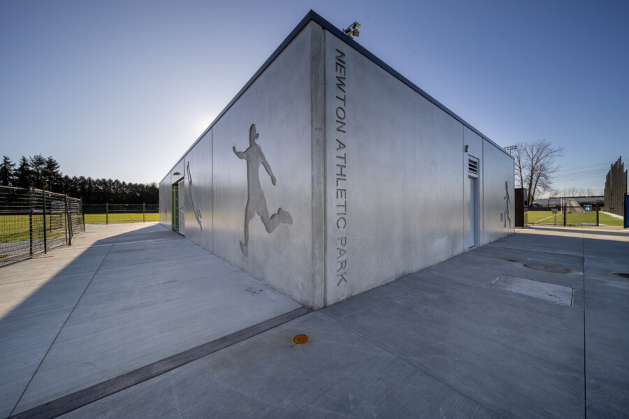 There is a significant amount of sidewalk placed around the Building to access the running track and soccer fields.
