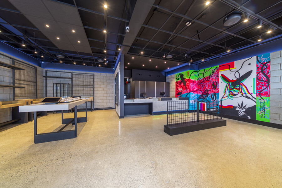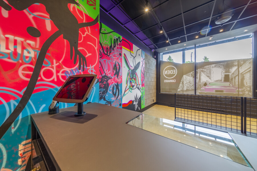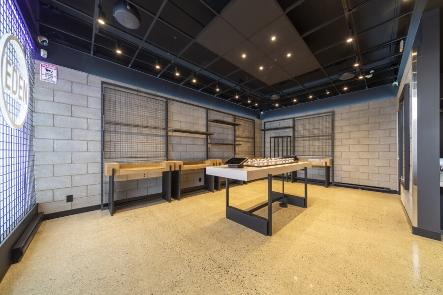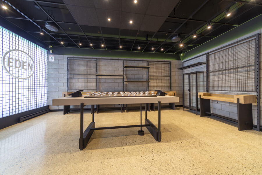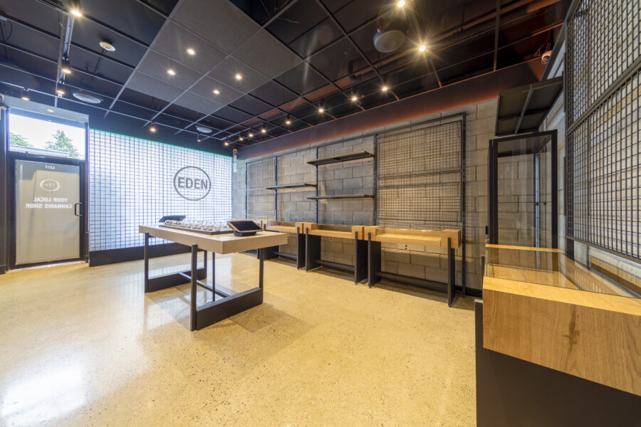 Two side by side individual commercial units consolidated into one larger cannabis store for Eden Empire Cannabis.